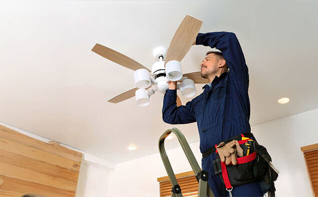 We deliver a wide range of ceiling fan installation services for indoor and outdoor settings. Our comprehensive service process ensures the ideal ceiling fan setup for your specific requirements. From energy-efficient DC motor fans to remote-controlled options and weatherproof outdoor models, we’ve got the expertise to match your needs.